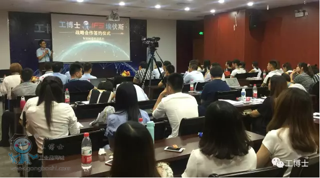 2017年7月7日嘉定南翔,工博士與埃伏斯簽署戰略合作協議,共同打造智能制造科創基地。未來雙方將在機器人集成解決方案、機器人智能制造培訓等多方面進一步深入合作,開拓更加廣闊的發展空間。