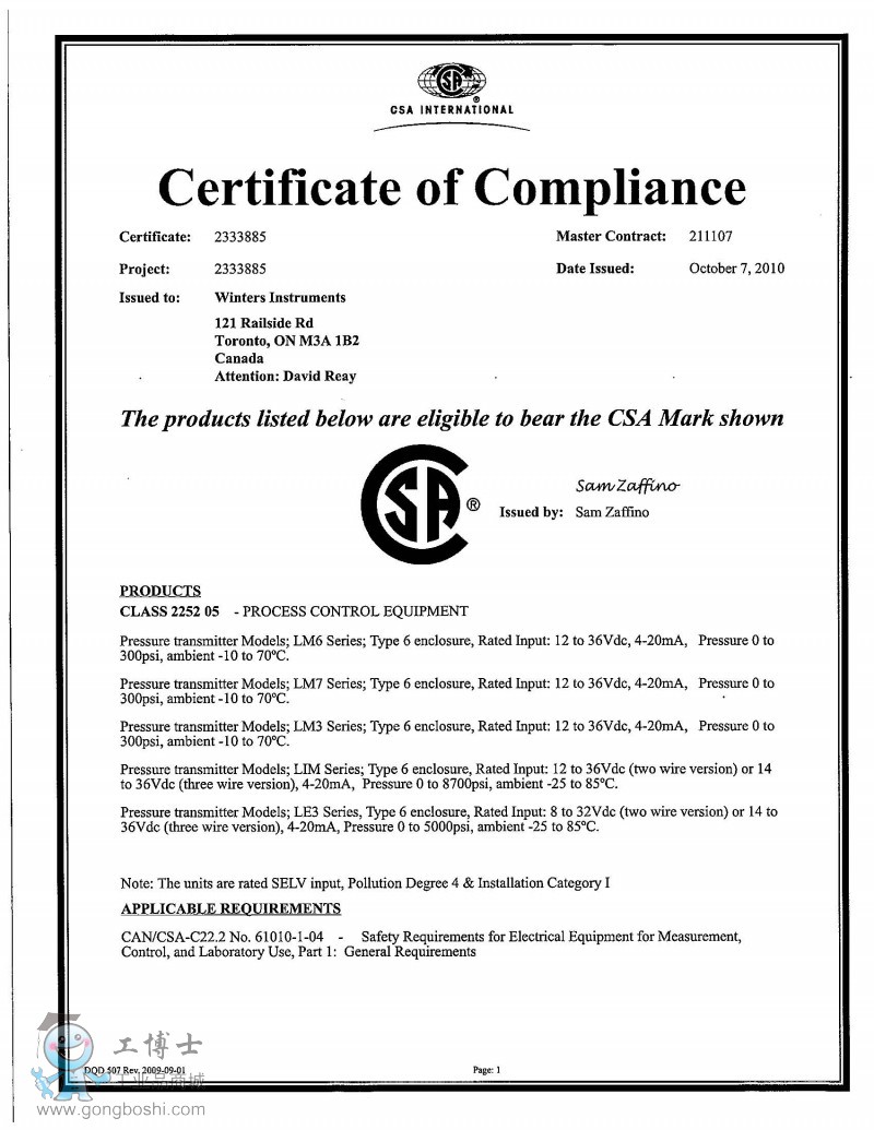 不同的團體一起工作來生成標準的要求(CSA),證明產(chǎn)品的質(zhì)量,提高市場的接受程度和提高質(zhì)量,為加拿大市場生產(chǎn)和施工安全控制程序。由CSA標準確定在加拿大危險區(qū)域認證產(chǎn)品的合格的基石。