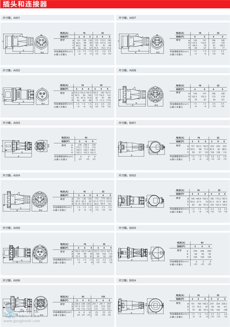 1、根據IEC60309標準(國際電工組織標準)和中國(GB標準)按電流來分,分為16A ,32A,63A,125A。