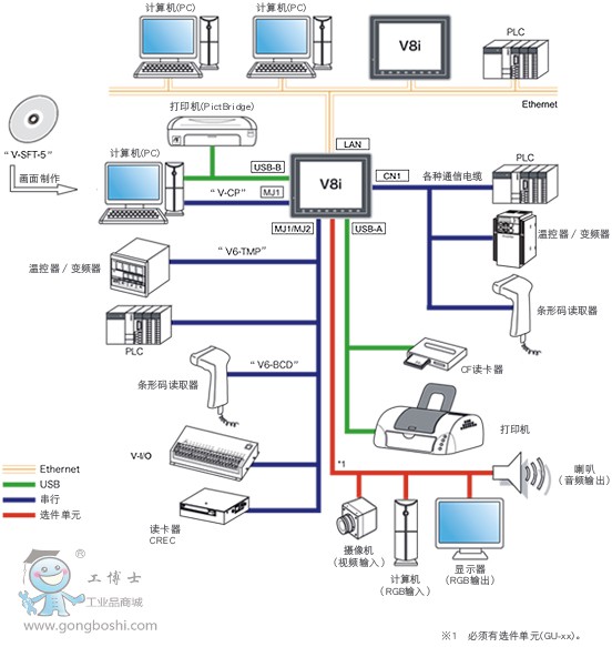 富士人機界面V8系列 V815iXN觸摸屏 15英寸 顯示分配率1024x768 |