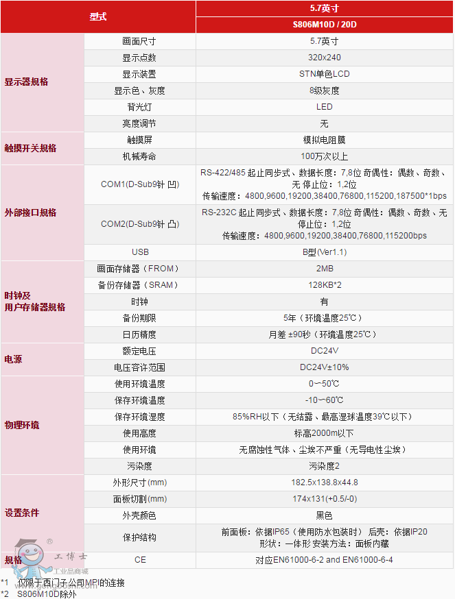 富士人機界面S806M10D/20D觸摸屏 5.7英寸 顯示分配率320x240 |