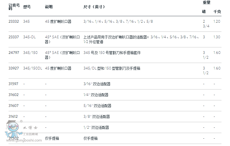 345 型是一種精密設計的工具,用于加工 45° 喇叭口,適合軟銅管、黃銅管、鋁管和低碳鋼管。