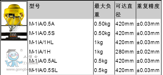 一、 產品型號:FANUC M-1iA是一款超輕量、緊湊的6軸結構,并設計有平行連桿結構的智能拳頭機器人,可以實現各種方向的安裝,并配有適應復雜裝配作業的三軸手腕,非常靈活。