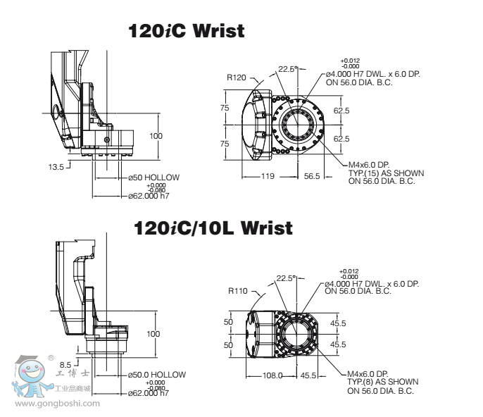 發(fā)那科機(jī)器人ARCMate120iC/10L6軸負(fù)載10kg范圍2009mm重復(fù)精度±0.1弧焊機(jī)器人,防護(hù)等級(jí)IP69K