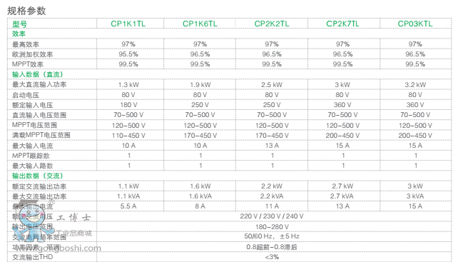 科陸:CP1K1TL單相戶(hù)用逆變器(單路MPPT) |
