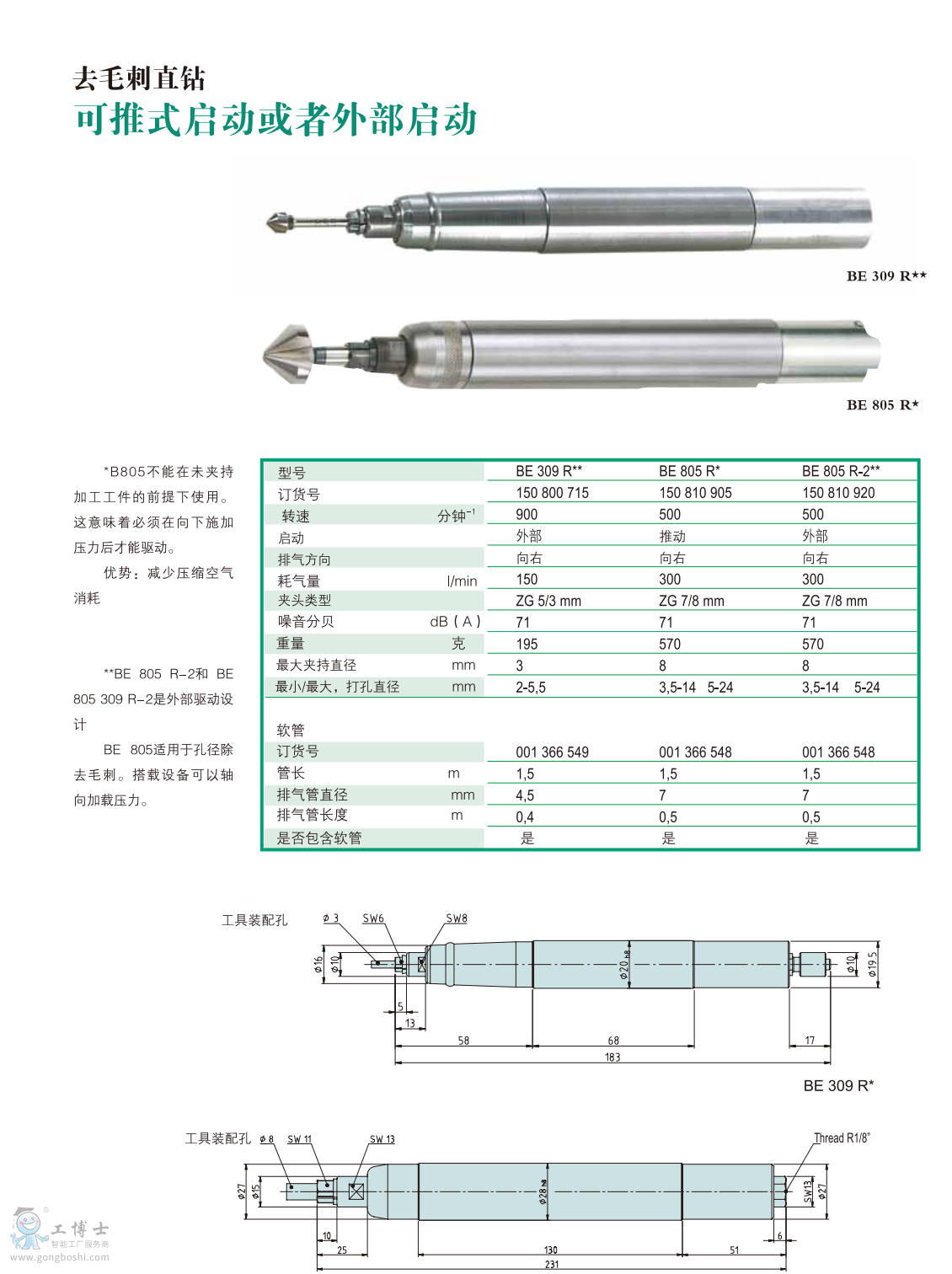 德國BIAX巴可斯 去毛刺直鉆 BE309R 可推式啟動或者外部啟動