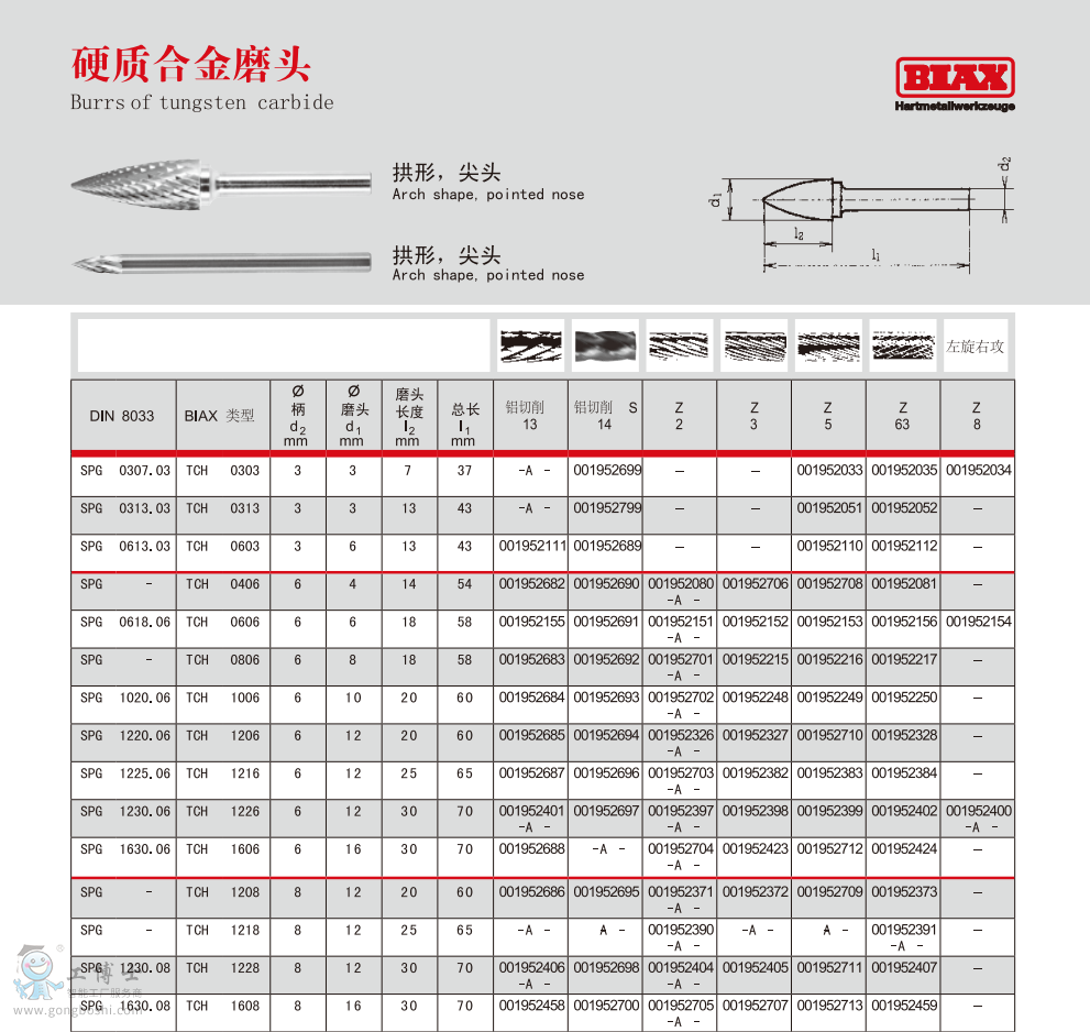 德國BIAX巴可斯 TCH 0303 硬質(zhì)合金磨頭 |