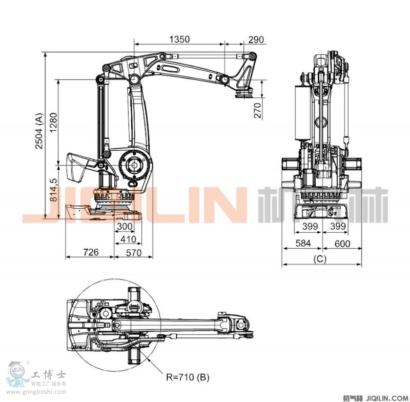 該機型有效荷重高達450 kg,到達距離為3.2米,其*顯著的特點是手腕慣量比同類產品大一倍,在旋轉超大超重產品時具有無可比擬的高速度,尤其適合飲料、建筑材料和化工產品的碼垛。