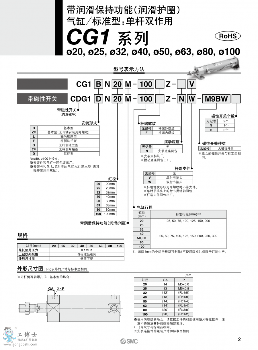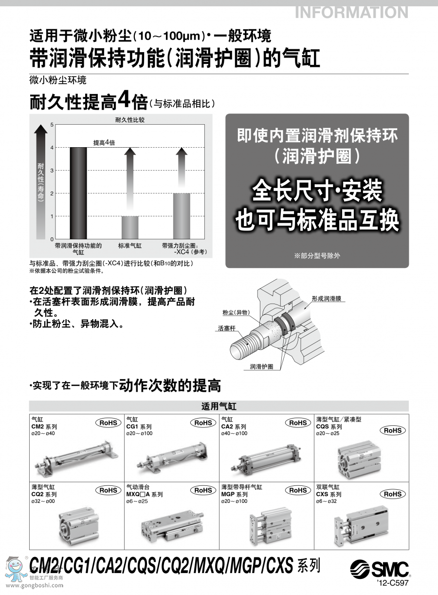 CM2/CG1/CA2/CQS/CQ2/MXQ/MGP/CXS SMC帶潤滑保持功能(潤滑護圈)
