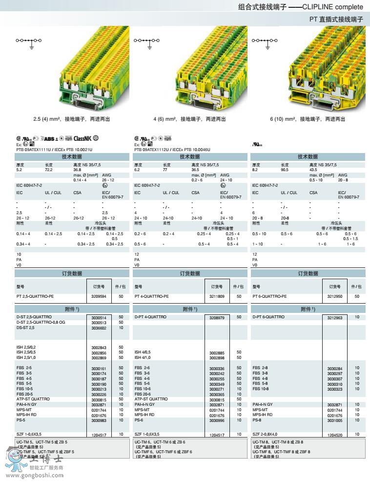 菲尼克斯phoenix直插式接線PT 4-QUATTRO-PE訂貨號3212950原裝現貨 可開增票