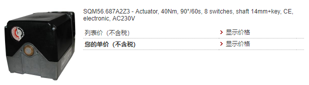 產品說明 SQM56.687A2Z3 - Actuator, 40Nm, 90°/60s, 8 switches, shaft 14mm+key, CE, electronic, AC230V