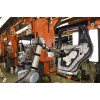 產(chǎn)品拾放過(guò)程中,在空間狹小的圓盤工作站上吊裝UR機(jī)器人,由左右工人隨機(jī)上料。螺絲擰緊后,UR機(jī)器人取下完成產(chǎn)品,再根據(jù)皮帶線狀況完成分揀投放。靈活的UR機(jī)器人使得生產(chǎn)線的改造和調(diào)整更加容易。