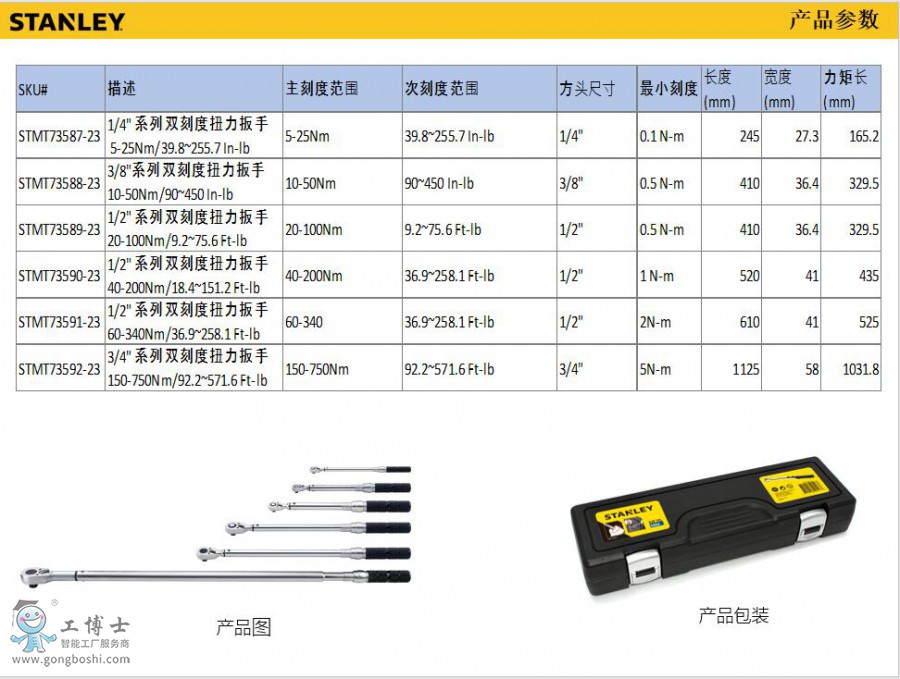 史丹利新產品扭矩扳手,型號有STMT73587-23、STMT73588-23、STMT73589-23、STMT73590-23、STMT73591-23、STMT73592-23。