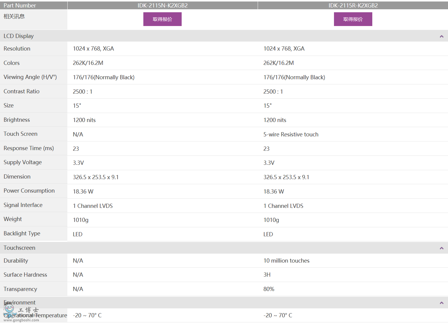 參數: 15 英寸 LCD 支持 1024 x 768 像素