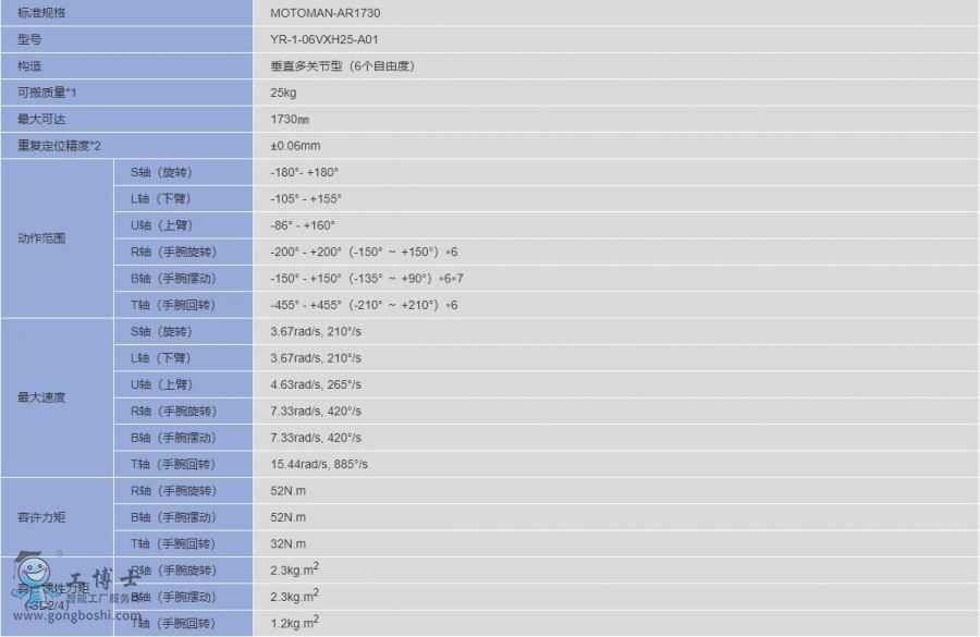 日本YASKAWA安川MOTOMAN-AR1730弧焊碼垛6軸垂直多關節型機器人及配件
