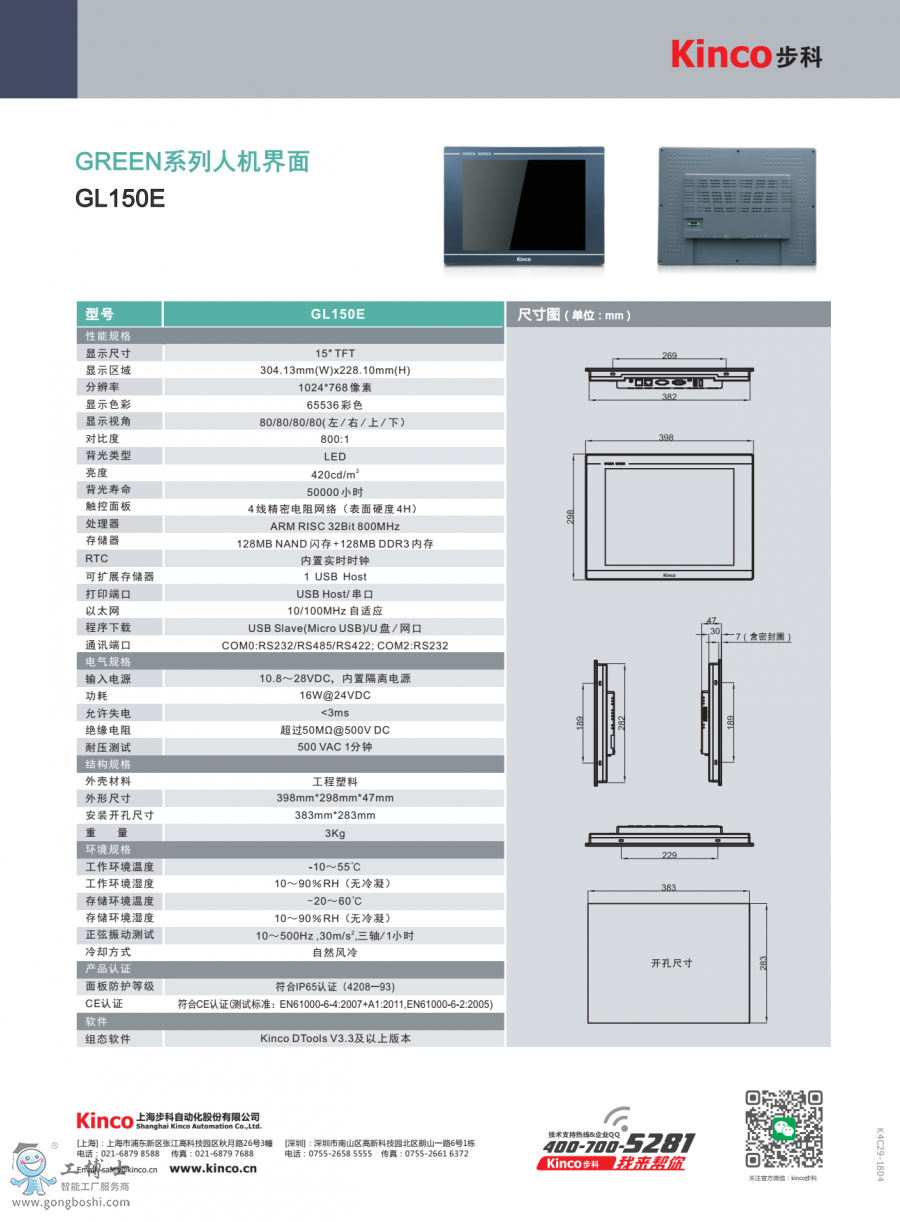 Kinco步科觸摸屏GREEN系列GL150E|支持編程調(diào)試|售后維修 |