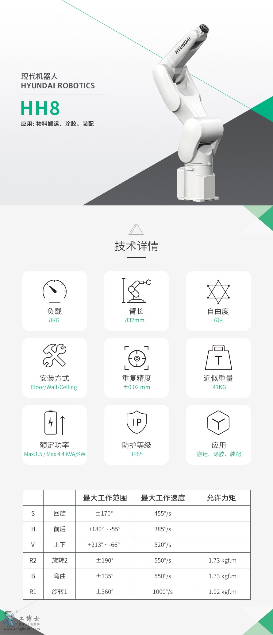 現代機器人HYUNDAI ROBOTICS HH8 適用Hi5a-T10,Hi5a-S20控制器