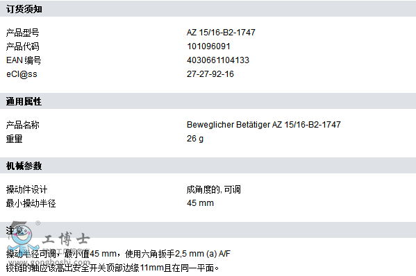 AZ 15/16-B2-1747安全門開關操動件德國施邁賽SCHMERSAL