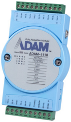 ADAM-4118是16位A/D、8通道的熱電偶輸入模塊,可以采集電壓、電流熱電偶等模擬量輸入信號,它支持多種熱電偶類型(Type J, K, T, E, R, S, B),并且將測量到的溫度以工程量單位(℃)輸出給上位機(jī)。為了適應(yīng)各種應(yīng)用場合,ADAM-4118的每個通道可以配置成不同的熱電偶輸入類型。 ADAM-4118支持8路差分信號,還支持MODBUS協(xié)議。在模塊的右側(cè)有一個白色的撥碼開關(guān)來設(shè)置初始化狀態(tài)(INIT*)和正常工作狀態(tài)的切換。除了熱電偶量程外,ADAM-4118還具有4-20ma、±20ma等電流量程,當(dāng)需要測量電流時,不需要外接電阻,只需打開盒蓋,按照電路板上的標(biāo)識來設(shè)置跳線即可。