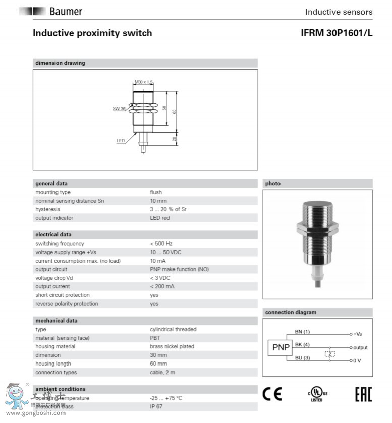 Baumer堡盟電感式接近開關IFRM 30P3601/L開增值票現貨可開增票 |