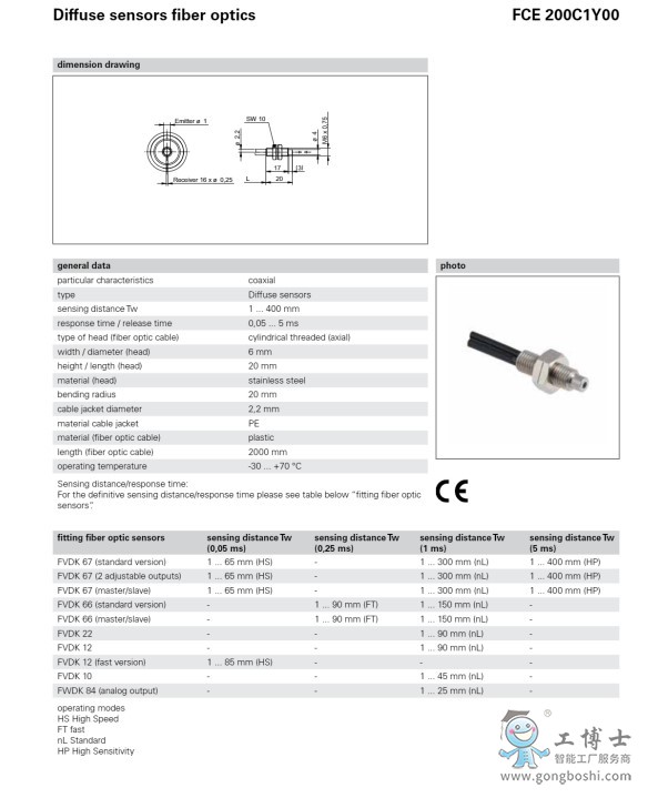 FKE 200D1Y00 光纖感應頭-Baumer 堡盟 光纖頭