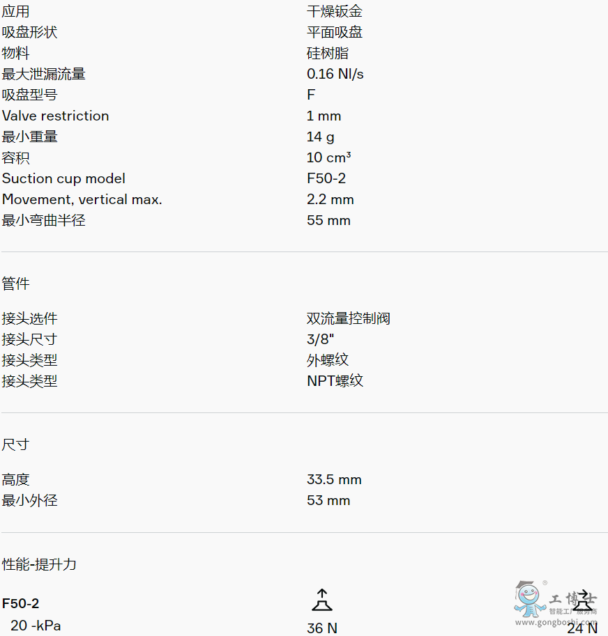 PIAB派亞博 0101758 平面吸盤 F50-2 |