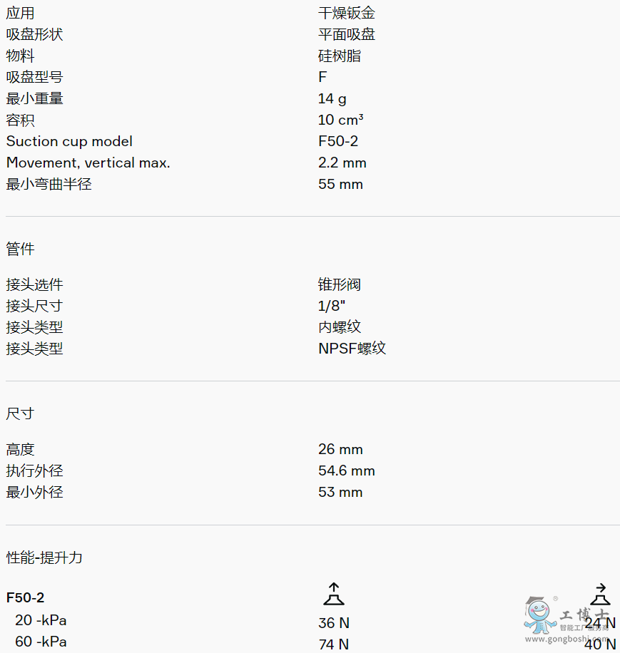 PIAB派亞博 3150051S 平面吸盤 F50-2,接口:1/8“ NPSF 內螺紋, 帶錐形閥 |