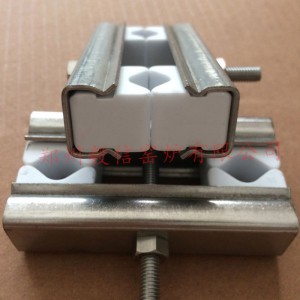 固定夾塊,硅鉬棒整個元件的重量都是由它承擔,元件的位置也由它決定,須仔細安裝,使元件垂直懸掛。為避免局部過熱,硅鉬棒元件下端圓錐部分一定要伸到爐膛內。為避免幅射熱傳到夾頭,夾頭下端和穿磚上面的距離不應小于50mm。