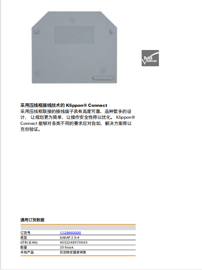 Weidmuller SAKAP2.5-4 魏德米勒 接線端子擋板 訂貨號1129460000 |