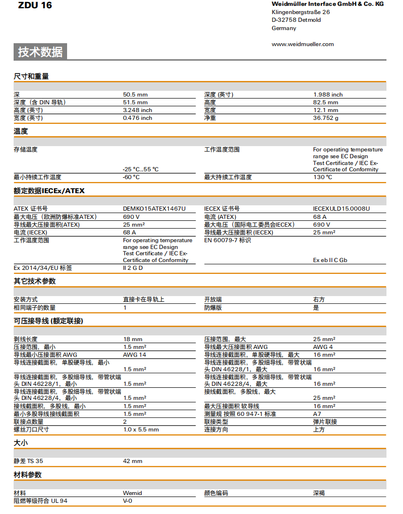 Weidmuller ZDU 16 魏德米勒 直通型接線端子 訂貨號1745230000 |