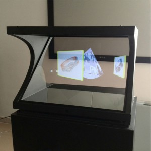 360全息展示柜:由透明全息成像玻璃組成,,參觀者可從任意面觀看自由懸浮的影像