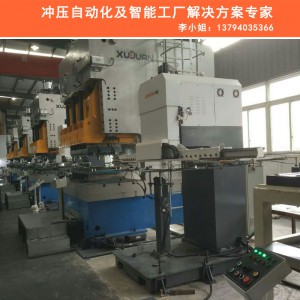 沖壓機械手是機械手的一種應用在沖床上的機械手,主要是替代人工進行自動上下料取料送料等工作。可提高生產過程中的自動化程度,利用機械手有利于提高材料的傳送,工件的裝卸,獨立式沖壓機械手刀具的更換及機器的裝配等自動化程度,從而可以提高生產效率, 降低生產成本,加快實現工業機械化和自動化的步伐。可以改善勞動條件,避免人身事故在高溫,高壓,低溫、低壓、有灰塵、噪聲、臭味、有放射性或有其它毒性 污染以及工作空間狹窄等場合中。