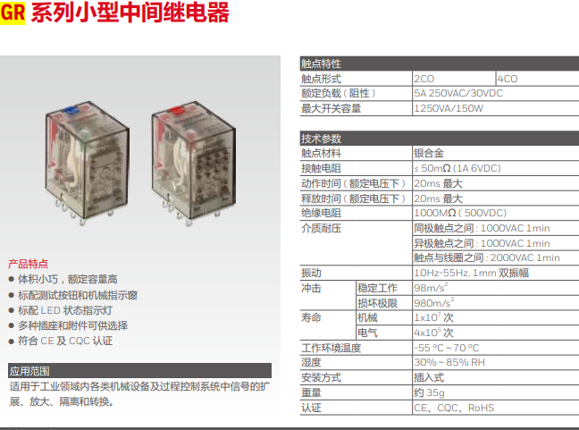 Honeywell/霍尼韋爾GR-4C-AC48V 中間繼電器 GR系列 帶燈