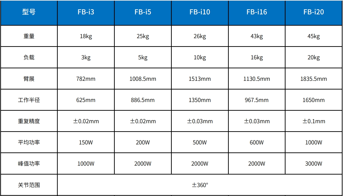 負載:10kg 重量:38.5kg 重復精度:±0.03mm 工作半徑:1350mm