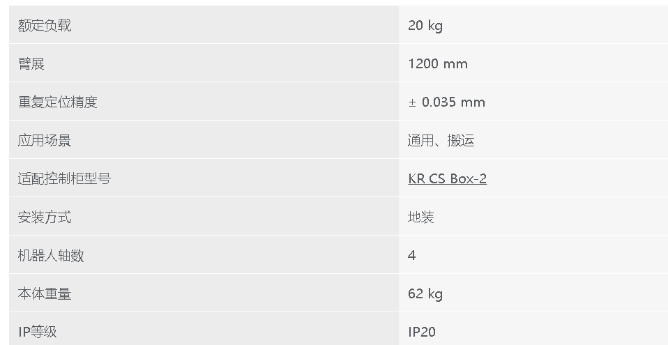 庫卡SCARA機器人KR 20 R1200 Z450 CS額定負載20 kg臂展1200 mm
