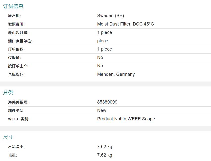 3HAC029589-001 ABB機器人備件 濕塵過濾器 |