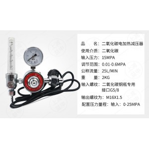 YQT-731LR二氧化碳減壓閥(帶流量計)的配置壓力規格:輸入:0-25 Mpa